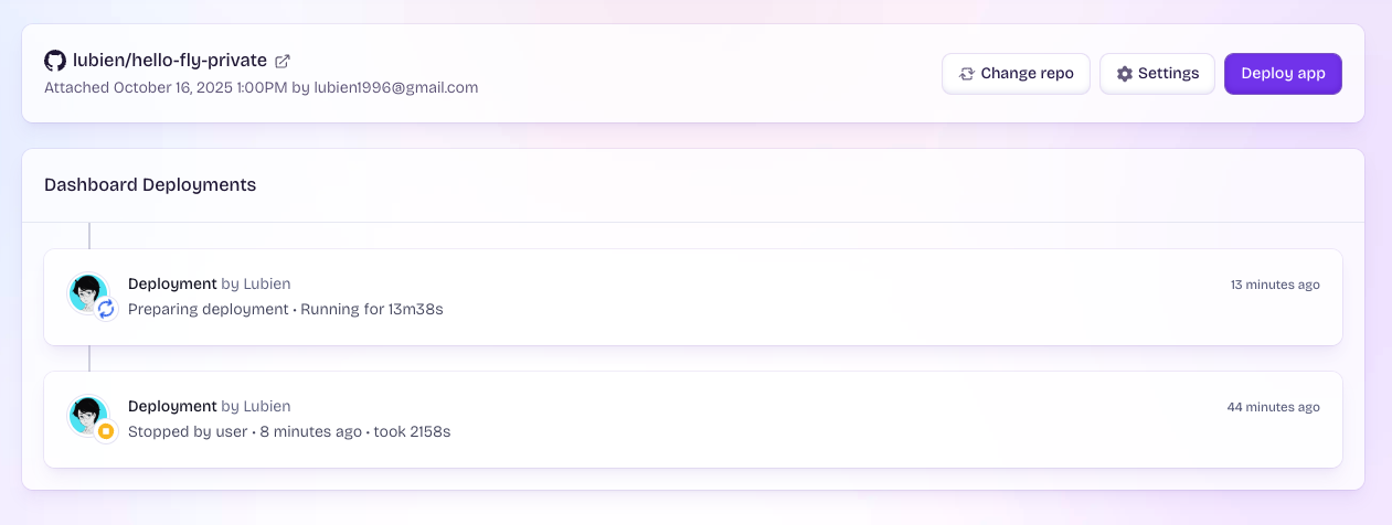 Speaking of which, we also started creating the Fly.io branch before the Build Image step runs so in case of build failures you can still access the new files we added (fly.toml, Dockerfile, .dockerignore, a few more files in some cases like Phoenix)